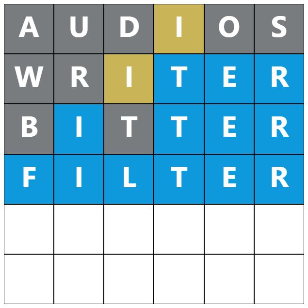 When you make a guess, the colours of the tiles will change, indicating whether the letters you guessed are in the answer and whether you have correctly placed them in the word. This game’s colours are grey, yellow, and blue, which have most likely been changed to distinguish itself further from the original Wordle.