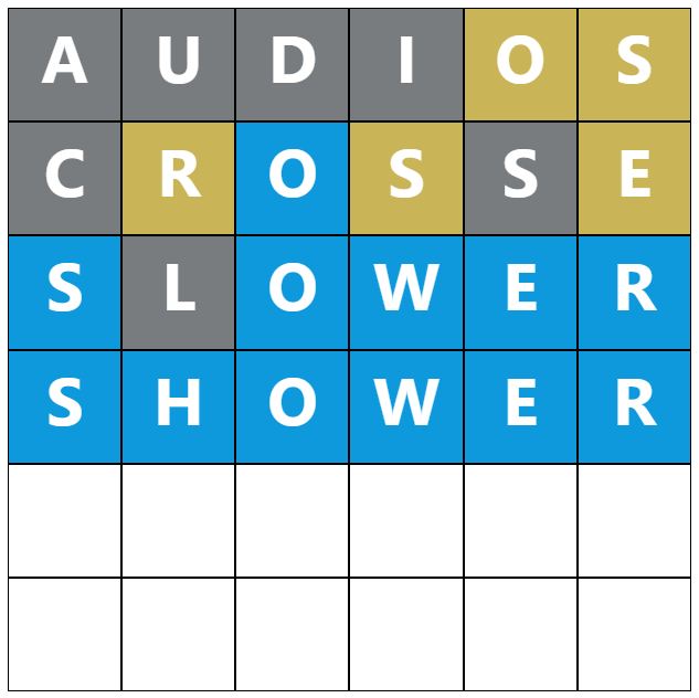 When you make a guess, the colours of the tiles will change, indicating whether the letters you guessed are in the answer and whether you have correctly placed them in the word. This game’s colours are grey, yellow, and blue, which have most likely been changed to distinguish itself further from the original Wordle.