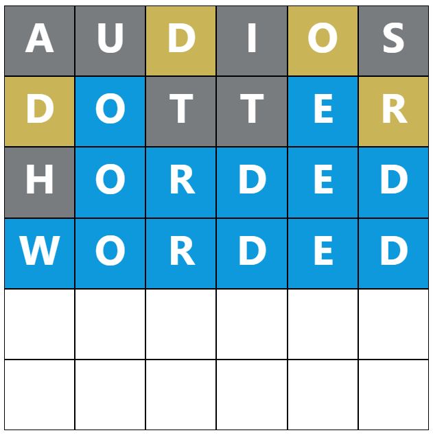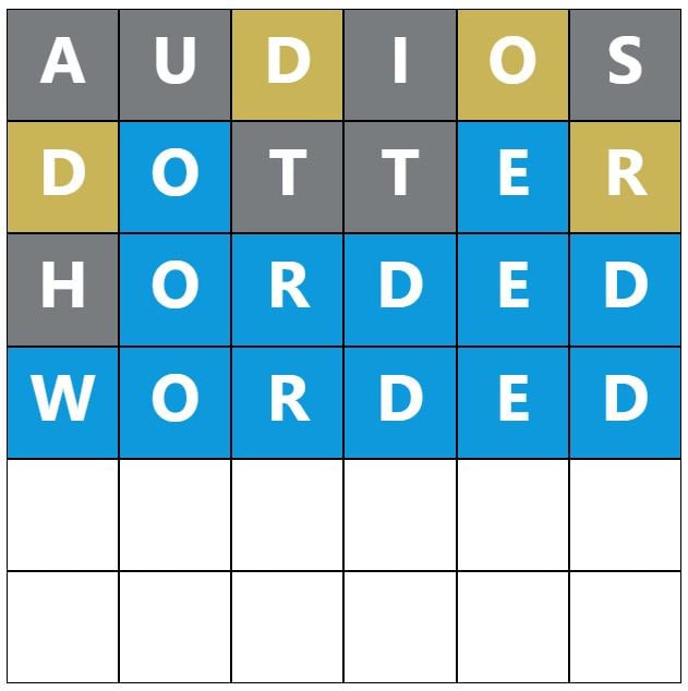 When you make a guess, the colours of the tiles will change, indicating whether the letters you guessed are in the answer and whether you have correctly placed them in the word. This game’s colours are grey, yellow, and blue, which have most likely been changed to distinguish itself further from the original Wordle.