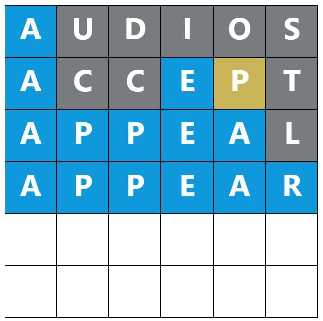 When you make a guess, the colours of the tiles will change, indicating whether the letters you guessed are in the answer and whether you have correctly placed them in the word. This game’s colours are grey, yellow, and blue, which have most likely been changed to distinguish itself further from the original Wordle.