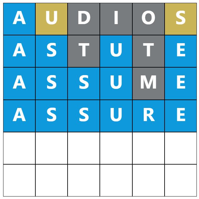 When you make a guess, the colours of the tiles will change, indicating whether the letters you guessed are in the answer and whether you have correctly placed them in the word. This game’s colours are grey, yellow, and blue, which have most likely been changed to distinguish itself further from the original Wordle.