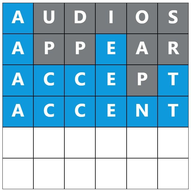 When you make a guess, the colours of the tiles will change, indicating whether the letters you guessed are in the answer and whether you have correctly placed them in the word. This game’s colours are grey, yellow, and blue, which have most likely been changed to distinguish itself further from the original Wordle.