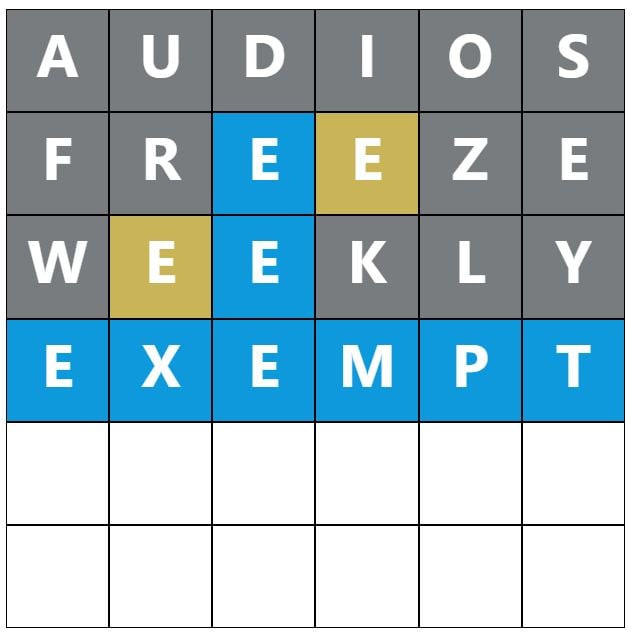 When you make a guess, the colours of the tiles will change, indicating whether the letters you guessed are in the answer and whether you have correctly placed them in the word. This game’s colours are grey, yellow, and blue, which have most likely been changed to distinguish itself further from the original Wordle.