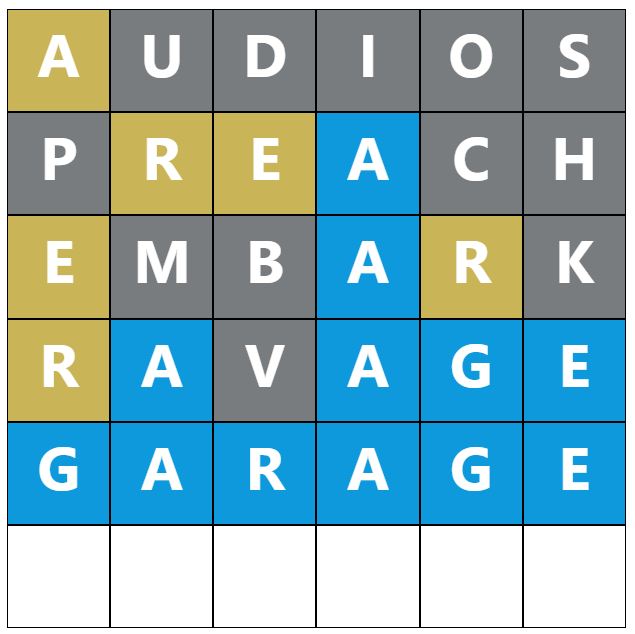 When you make a guess, the colours of the tiles will change, indicating whether the letters you guessed are in the answer and whether you have correctly placed them in the word. This game’s colours are grey, yellow, and blue, which have most likely been changed to distinguish itself further from the original Wordle.