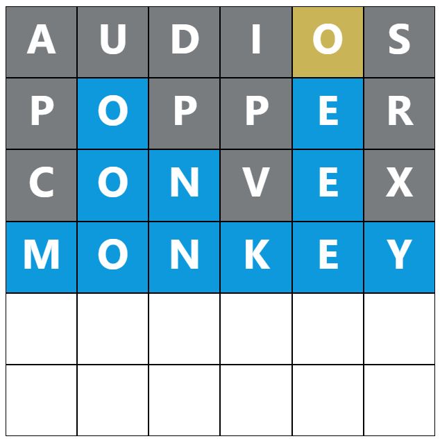 When you make a guess, the colours of the tiles will change, indicating whether the letters you guessed are in the answer and whether you have correctly placed them in the word. This game’s colours are grey, yellow, and blue, which have most likely been changed to distinguish itself further from the original Wordle.