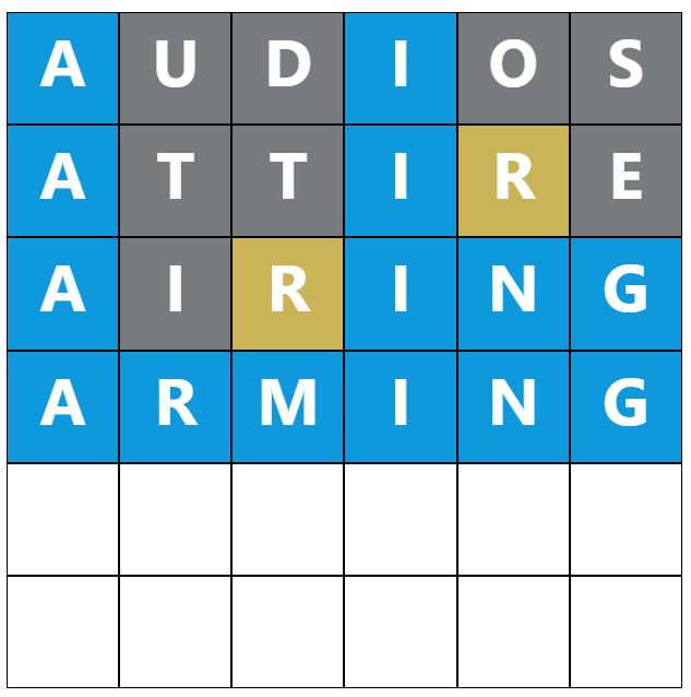 When you make a guess, the colours of the tiles will change, indicating whether the letters you guessed are in the answer and whether you have correctly placed them in the word. This game’s colours are grey, yellow, and blue, which have most likely been changed to distinguish itself further from the original Wordle.