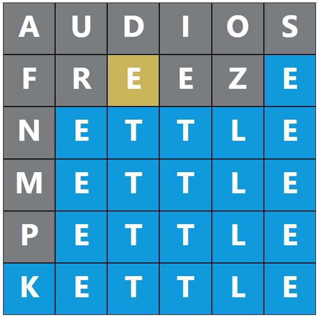 When you make a guess, the colours of the tiles will change, indicating whether the letters you guessed are in the answer and whether you have correctly placed them in the word. This game’s colours are grey, yellow, and blue, which have most likely been changed to distinguish itself further from the original Wordle.