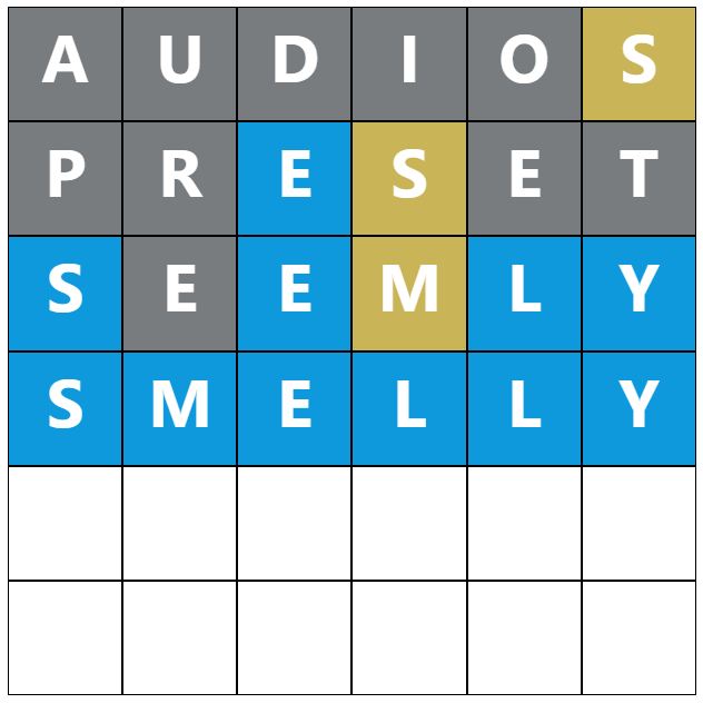 When you make a guess, the colours of the tiles will change, indicating whether the letters you guessed are in the answer and whether you have correctly placed them in the word. This game’s colours are grey, yellow, and blue, which have most likely been changed to distinguish itself further from the original Wordle.