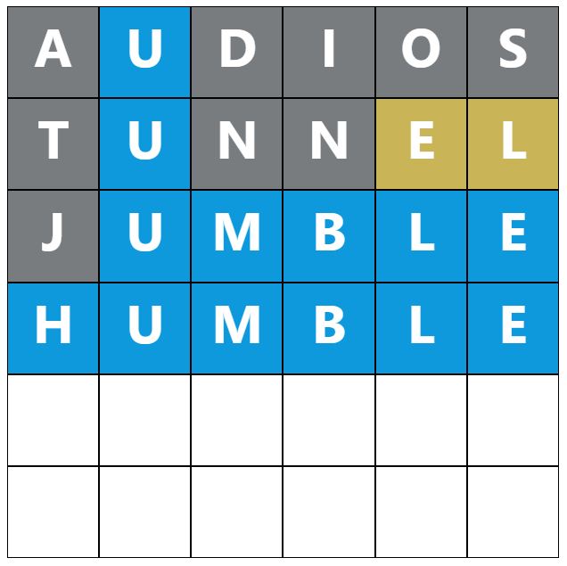 When you make a guess, the colours of the tiles will change, indicating whether the letters you guessed are in the answer and whether you have correctly placed them in the word. This game’s colours are grey, yellow, and blue, which have most likely been changed to distinguish itself further from the original Wordle.