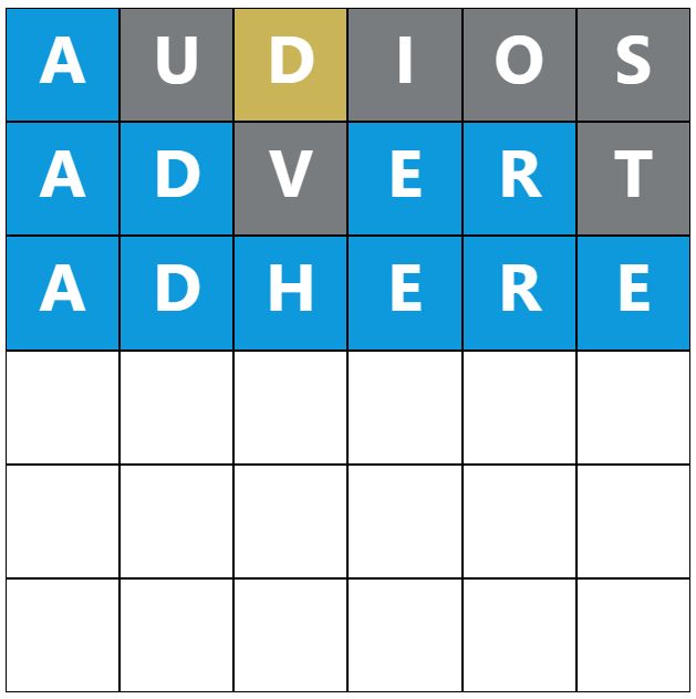 When you make a guess, the colours of the tiles will change, indicating whether the letters you guessed are in the answer and whether you have correctly placed them in the word. This game’s colours are grey, yellow, and blue, which have most likely been changed to distinguish itself further from the original Wordle.