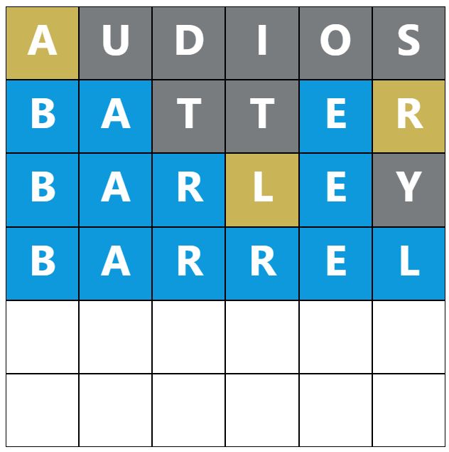 When you make a guess, the colours of the tiles will change, indicating whether the letters you guessed are in the answer and whether you have correctly placed them in the word. This game’s colours are grey, yellow, and blue, which have most likely been changed to distinguish itself further from the original Wordle.