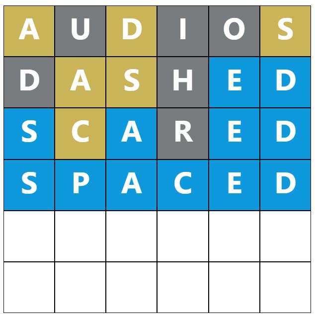 When you make a guess, the colours of the tiles will change, indicating whether the letters you guessed are in the answer and whether you have correctly placed them in the word. This game’s colours are grey, yellow, and blue, which have most likely been changed to distinguish itself further from the original Wordle.