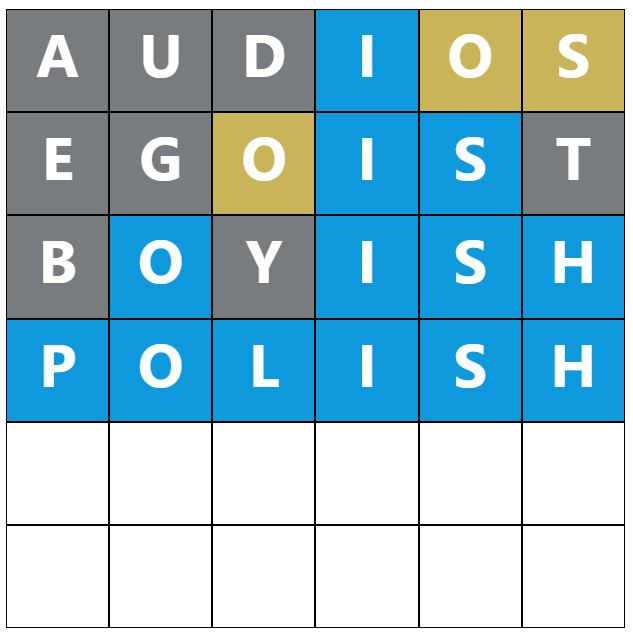 When you make a guess, the colours of the tiles will change, indicating whether the letters you guessed are in the answer and whether you have correctly placed them in the word. This game’s colours are grey, yellow, and blue, which have most likely been changed to distinguish itself further from the original Wordle.