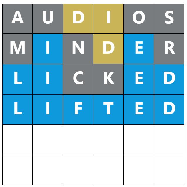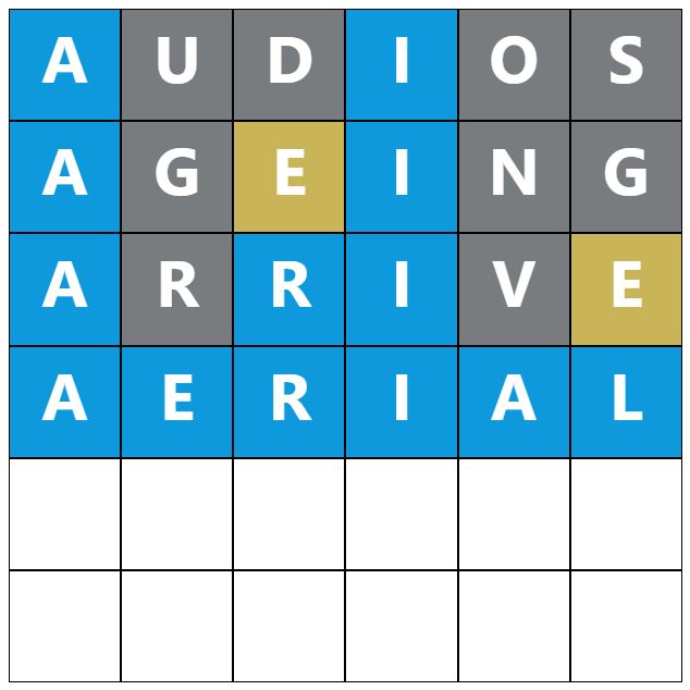 When you make a guess, the colours of the tiles will change, indicating whether the letters you guessed are in the answer and whether you have correctly placed them in the word. This game’s colours are grey, yellow, and blue, which have most likely been changed to distinguish itself further from the original Wordle.