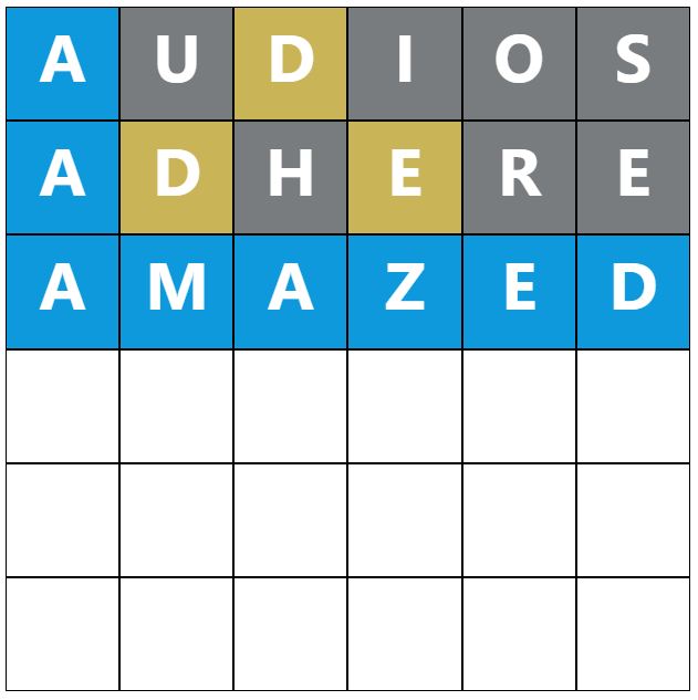 When you make a guess, the colours of the tiles will change, indicating whether the letters you guessed are in the answer and whether you have correctly placed them in the word. This game’s colours are grey, yellow, and blue, which have most likely been changed to distinguish itself further from the original Wordle.
