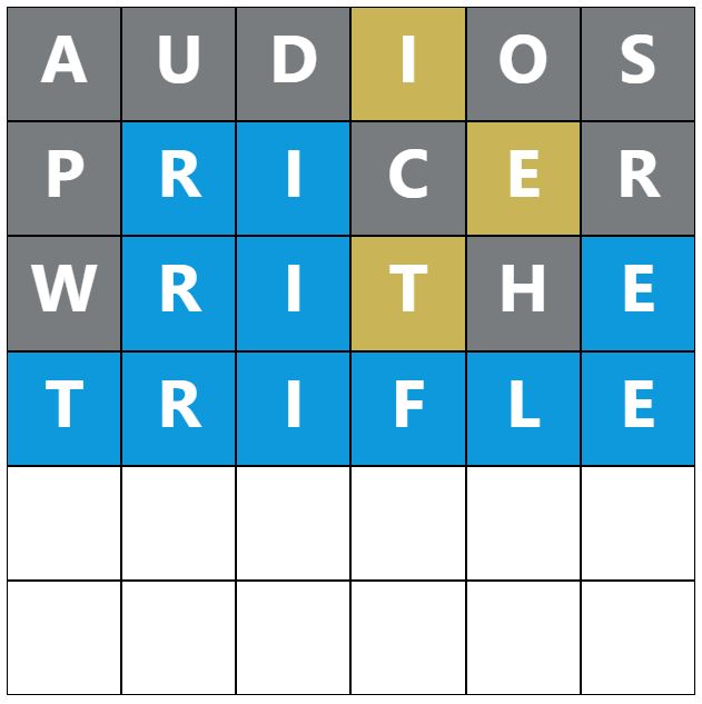 When you make a guess, the colours of the tiles will change, indicating whether the letters you guessed are in the answer and whether you have correctly placed them in the word. This game’s colours are grey, yellow, and blue, which have most likely been changed to distinguish itself further from the original Wordle.