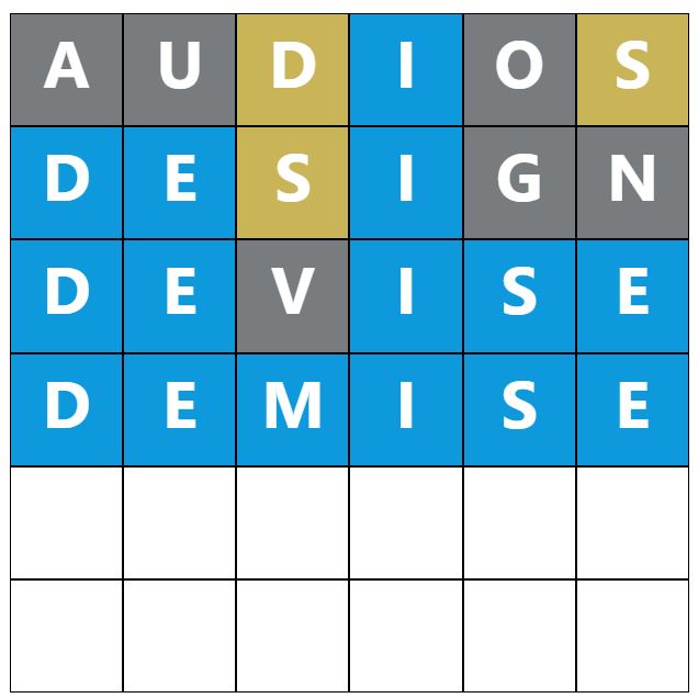 When you make a guess, the colours of the tiles will change, indicating whether the letters you guessed are in the answer and whether you have correctly placed them in the word. This game’s colours are grey, yellow, and blue, which have most likely been changed to distinguish itself further from the original Wordle.