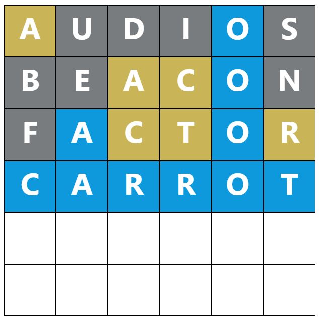 When you make a guess, the colours of the tiles will change, indicating whether the letters you guessed are in the answer and whether you have correctly placed them in the word. This game’s colours are grey, yellow, and blue, which have most likely been changed to distinguish itself further from the original Wordle.