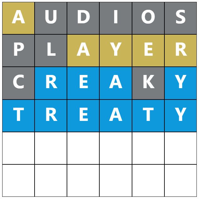 When you make a guess, the colours of the tiles will change, indicating whether the letters you guessed are in the answer and whether you have correctly placed them in the word. This game’s colours are grey, yellow, and blue, which have most likely been changed to distinguish itself further from the original Wordle.