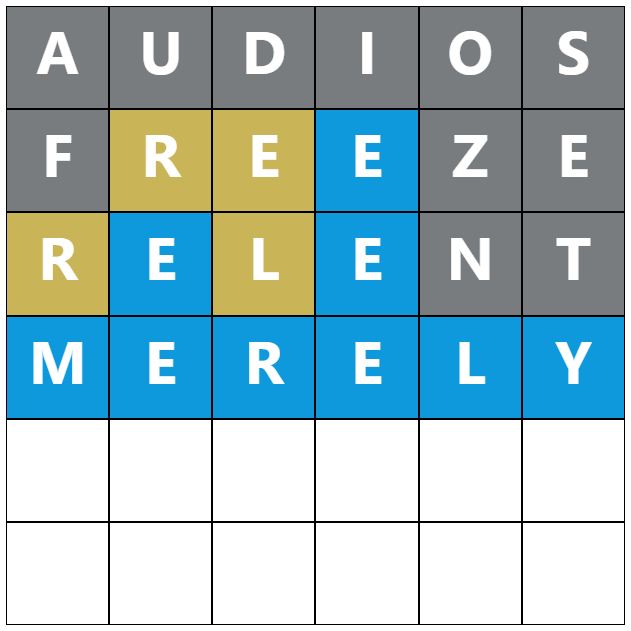 When you make a guess, the colours of the tiles will change, indicating whether the letters you guessed are in the answer and whether you have correctly placed them in the word. This game’s colours are grey, yellow, and blue, which have most likely been changed to distinguish itself further from the original Wordle.