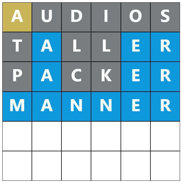 When you make a guess, the colours of the tiles will change, indicating whether the letters you guessed are in the answer and whether you have correctly placed them in the word. This game’s colours are grey, yellow, and blue, which have most likely been changed to distinguish itself further from the original Wordle.