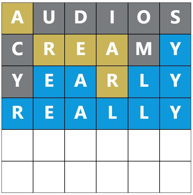 When you make a guess, the colours of the tiles will change, indicating whether the letters you guessed are in the answer and whether you have correctly placed them in the word. This game’s colours are grey, yellow, and blue, which have most likely been changed to distinguish itself further from the original Wordle.