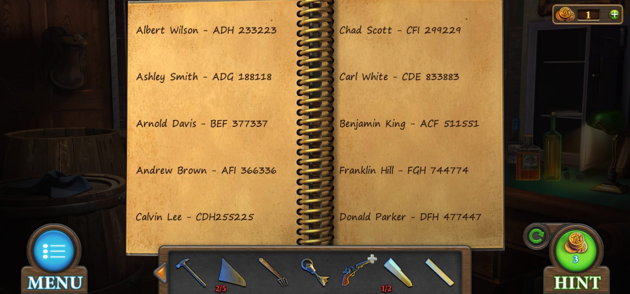 Once you click on ‘play’ you will be transported to the first location for this level, which is the Sheriff’s office. From here, there are a few items you can collect, which are:
