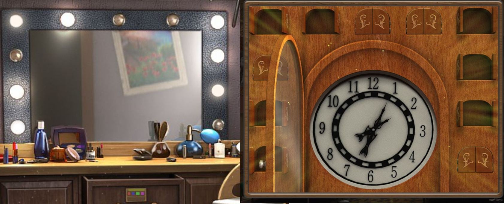 This will unlock a clock mini-game where the aim of the game is to open the acquired windows. If you noticed in the dressing room, there were some lights on around the mirror and some were off. This is the answer to the puzzle where you need to open the doors where the lights are on. Here is what it looks like completed:
