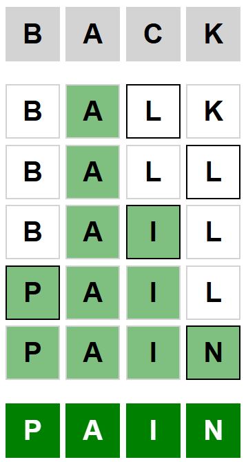 The starter word for the Weaver puzzle released today, September 17th 2025, is ‘BACK‘ and the end word is ‘PAIN‘.