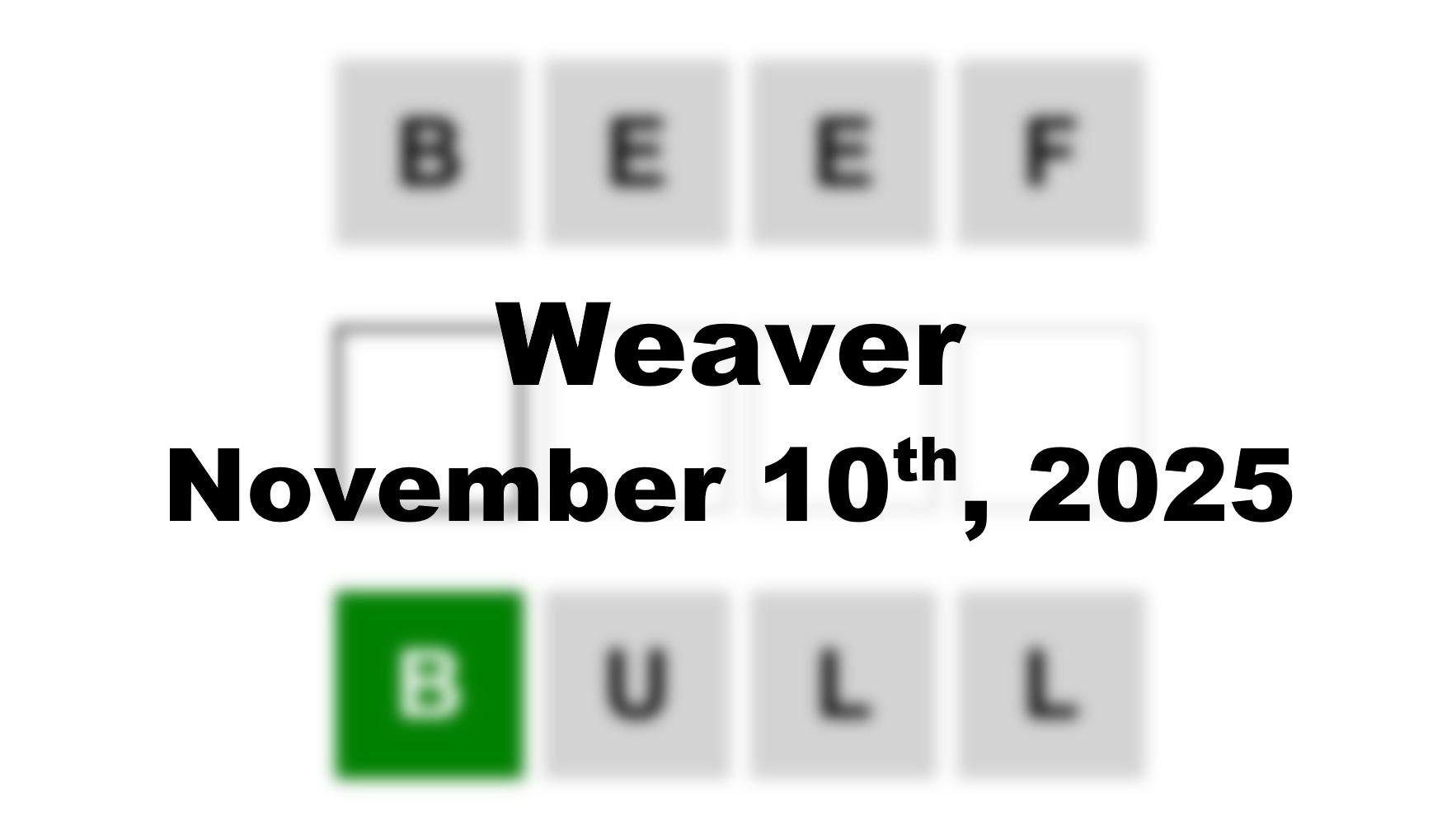 The starter word for the Weaver puzzle released today, November 10th 2025, is ‘BEEF‘ and the end word is ‘BULL‘.