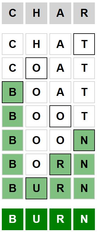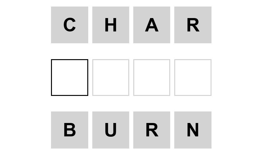 The starter word for the Weaver puzzle released today, August 22nd 2025, is ‘CHAR‘ and the end word is ‘BURN‘.