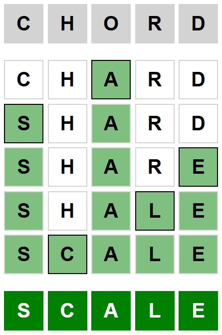 The starter word for the Weaver puzzle released today, October 29th 2025, is ‘CHORD‘ and the end word is ‘SCALE‘.