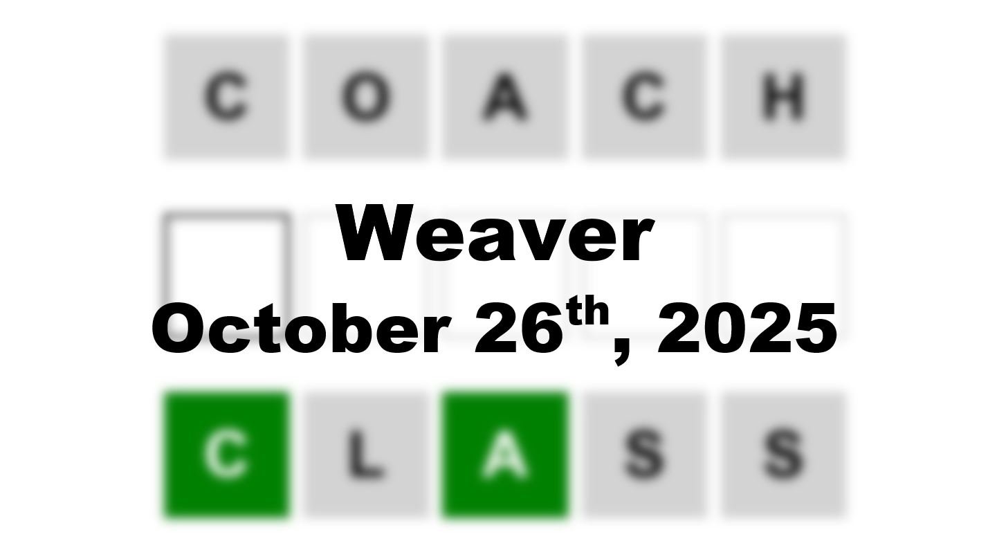 The starter word for the Weaver puzzle released today, October 26th 2025, is ‘COACH‘ and the end word is ‘CLASS‘.