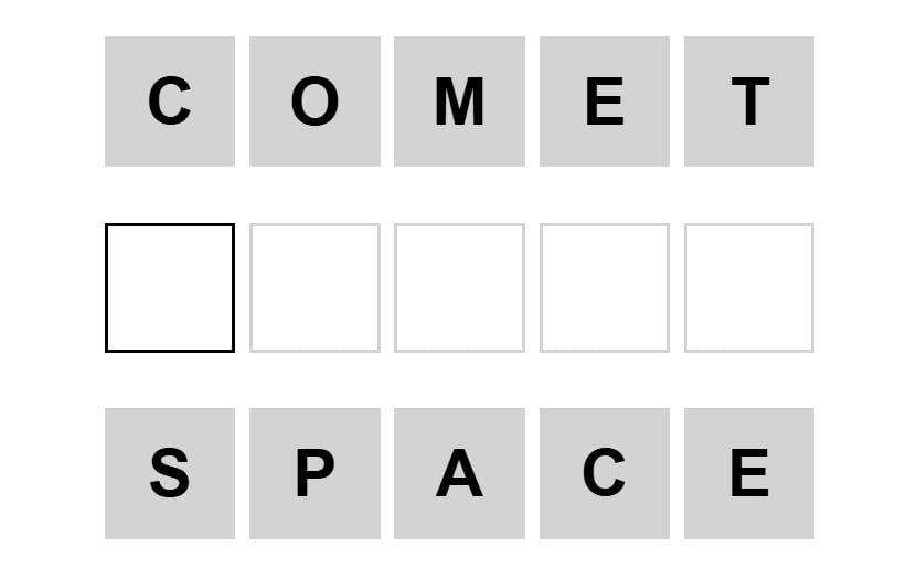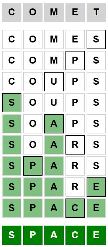 The starter word for the Weaver puzzle released today, November 9th 2025, is ‘COMET‘ and the end word is ‘SPACE‘.