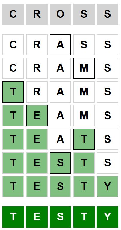 Here is the answer to the Weaver puzzle today, from cross to testy, released on March 14th 2026, and some hints to help you solve it.