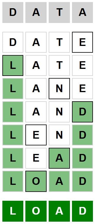 The starter word for the Weaver puzzle released today, December 13th 2025, is ‘DATA‘ and the end word is ‘LOAD‘.