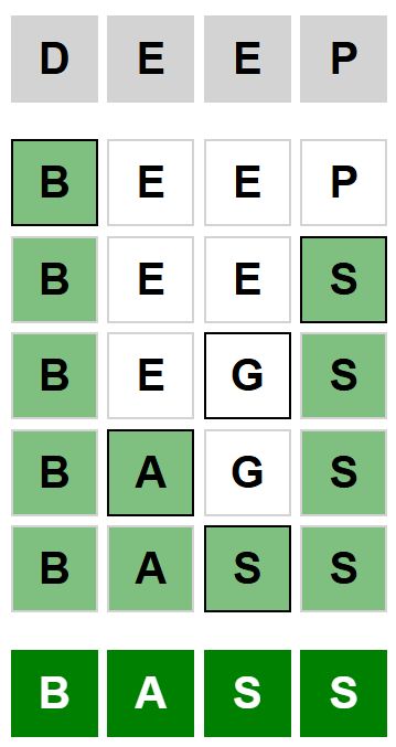 The starter word for the Weaver puzzle released today, October 22nd 2025, is ‘DEEP‘ and the end word is ‘BASS‘.