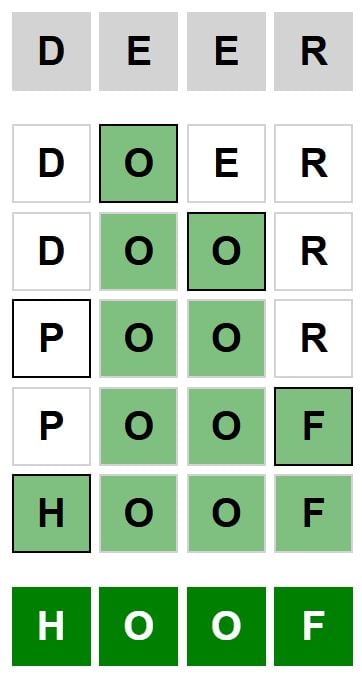 Here is the answer to the Weaver puzzle today, from deer to hoof, released on February 5th 2026, and some hints to help you solve it.