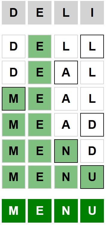 Here is the answer to the Weaver puzzle today, deli to menu, released on November 21st 2025, and some hints to help you solve it.