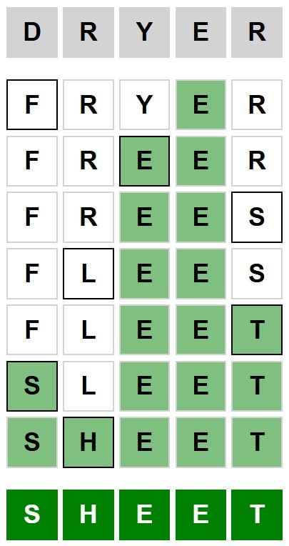 Here is the answer to the Weaver puzzle today, DRYER to SHEET, released on September 6th 2025, and some hints to help you solve it.