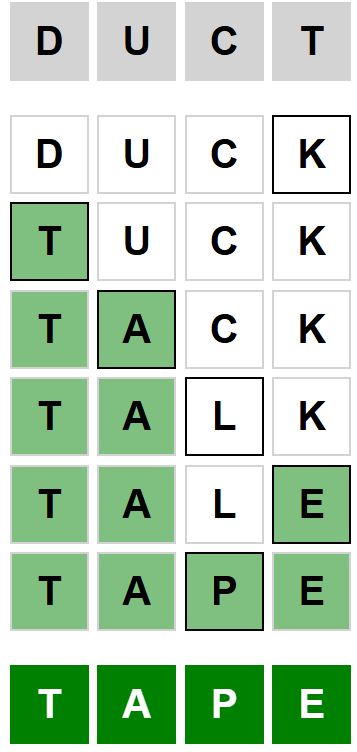The starter word for the Weaver puzzle released today, March 13th 2026, is ‘DUCT‘ and the end word is ‘TAPE‘.