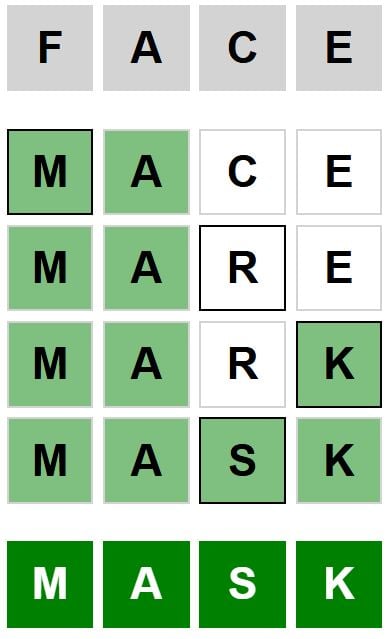 Here is the answer to the Weaver puzzle today, FACE to MASK, released on September 15th 2025, and some hints to help you solve it.