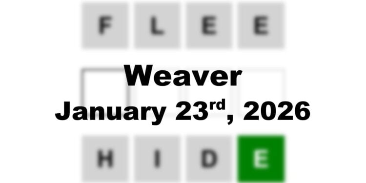 The starter word for the Weaver puzzle released today, January 23rd 2026, is ‘FLEE‘ and the end word is ‘HIDE‘.