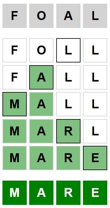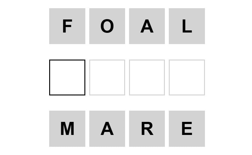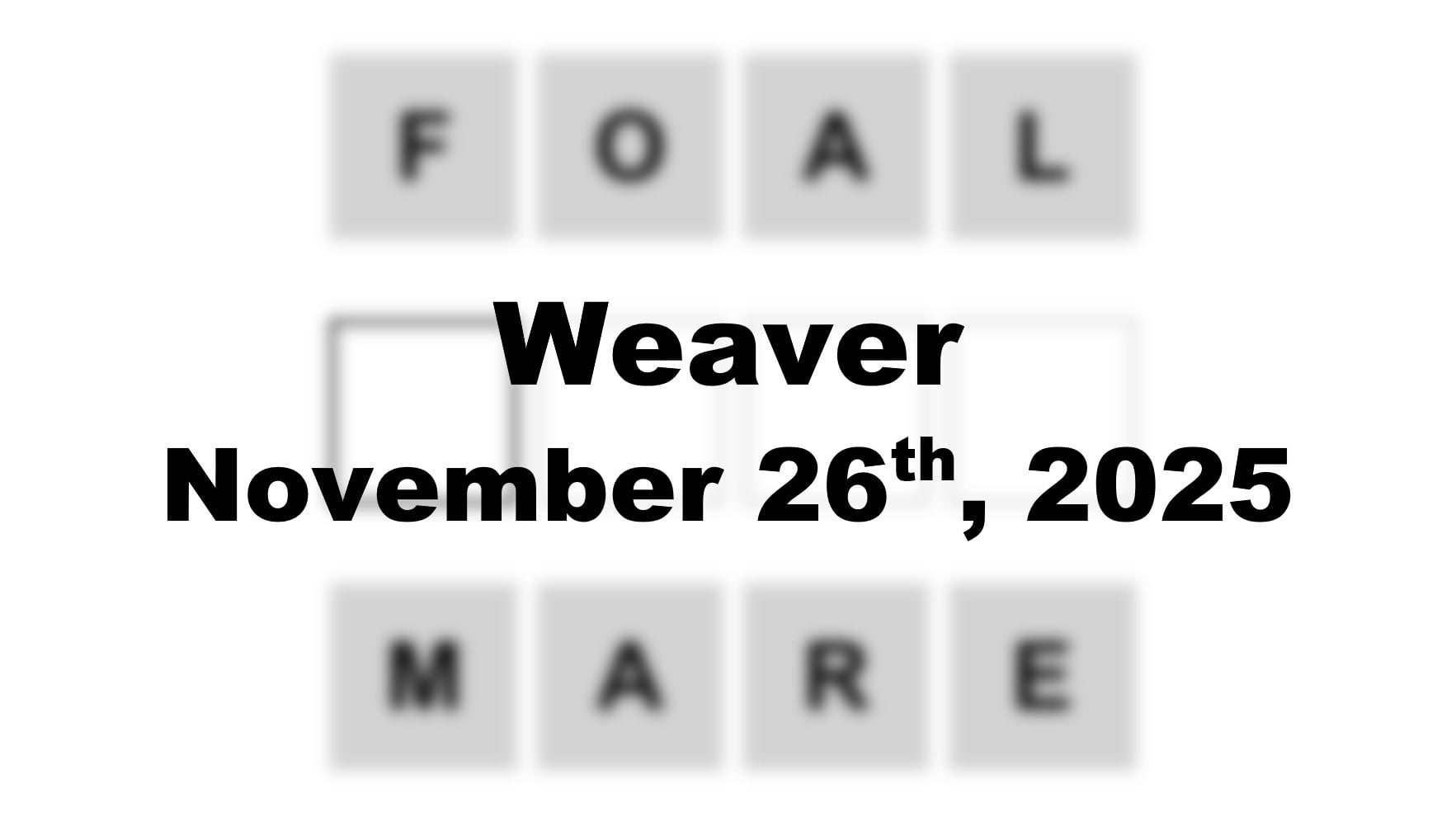 The starter word for the Weaver puzzle released today, November 26th 2025, is ‘FOAL‘ and the end word is ‘MARE‘.