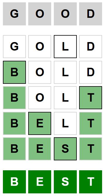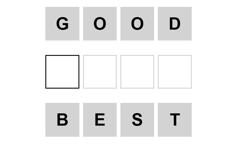 The starter word for the Weaver puzzle released today, April 7th 2026, is ‘GOOD‘ and the end word is ‘BEST‘.