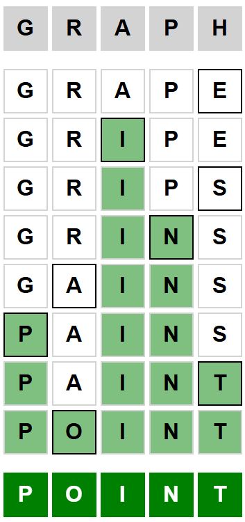 The starter word for the Weaver puzzle released today, January 18th 2026, is ‘GRAPH‘ and the end word is ‘POINT‘.