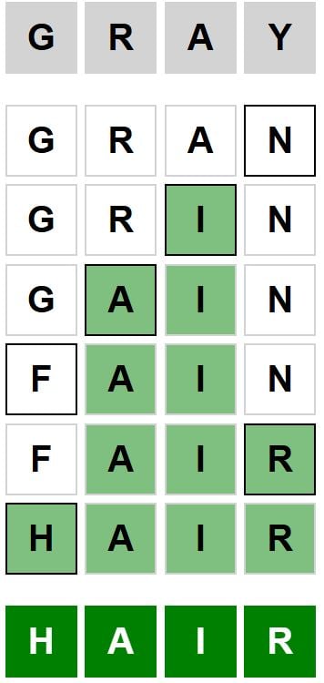 Here is the answer to the Weaver puzzle today, from gray to hair, released on March 5th 2026, and some hints to help you solve it.
