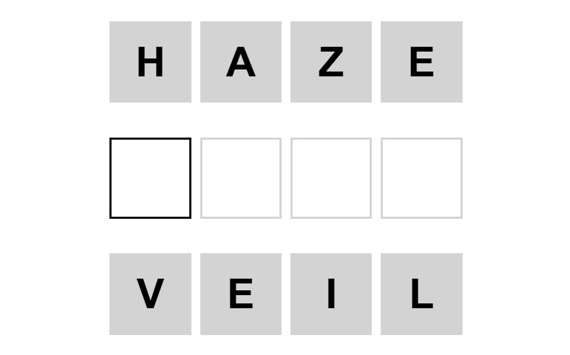 The starter word for the Weaver puzzle released today, February 26th 2026, is ‘HAZE‘ and the end word is ‘VEIL‘.