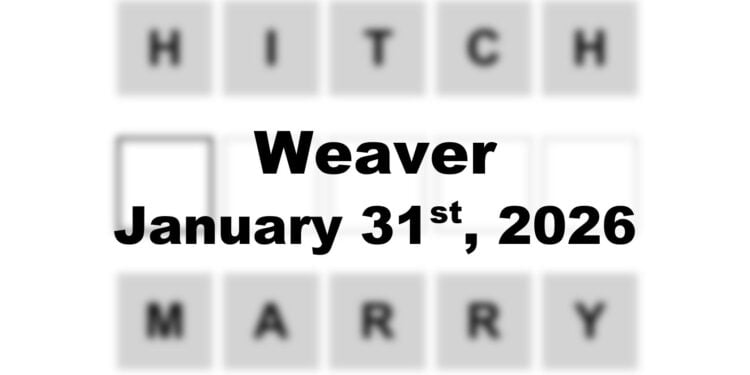 The starter word for the Weaver puzzle released today, January 31st 2026, is ‘HITCH‘ and the end word is ‘MARRY‘.