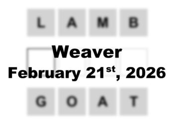 The starter word for the Weaver puzzle released today, February 21st 2026, is ‘LAMB‘ and the end word is ‘GOAT‘.